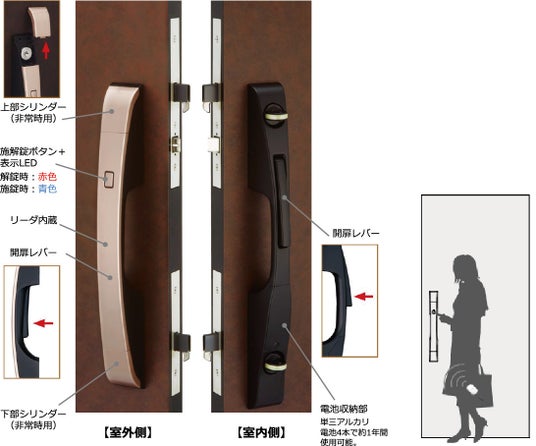 IDキーを取り出すことなく、リーダー内蔵のドアボタンを押すだけでドアを施解錠できます。