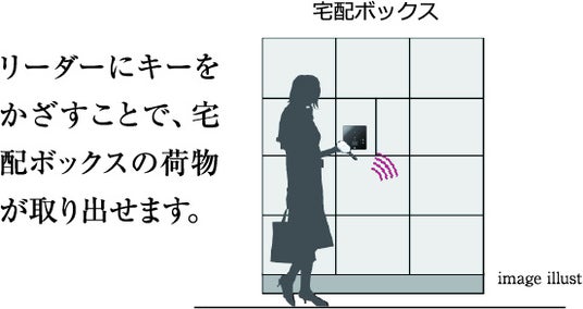 住戸玄関のキーをポケットやバッグに携帯し、風除室等のセンサー近くを通行することで認証を行い解錠します。