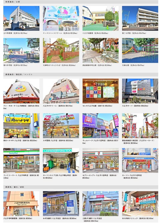 JR「八王子」駅徒歩7分、「京王八王子」駅徒歩11分。