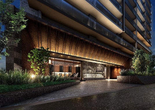 ※掲載の外観完成予想CGは、計画段階の図面を基に描き起こしたもので実際とは異なります。なお、外観の細部及び設備機器等は一部省略又は簡略化しております。家具・調度品等は今後変更になる場合があります。実物と質感・色等の見え方が異なる場合があります。植栽は計画段階のもので、変更となる場合があります。