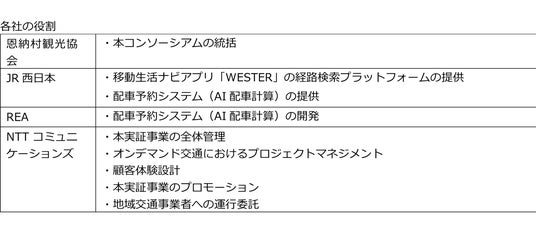 一般社団法人恩納村観光協会(会長:宮崎 るみ子、以下 恩納村観光協会)、西日本旅客鉄道株式会社(代表取締役社長:長谷川 一明、以下 JR西日本)、株式会社REA (代表取締役社長:坂田 敬次郎、以下 REA)、NTTコミュニケーションズ株式会社(代表取締役社長:小島 克重、以下 NTT Com)が構成する恩納村オンデマンド交通推進コンソーシアム(以下 本コンソーシアム)は、「恩納村内オンデマンド交通※1」運行実証事業※2(以下 本実証事業)を2024年12月1日から開始します。本実証事業により、ホテル従業員の送迎稼働削減をしつつ、観光宿泊客の利便性向上を実現することで、観光宿泊客が観光施設などを利用することによる消費額の増大をめざします。