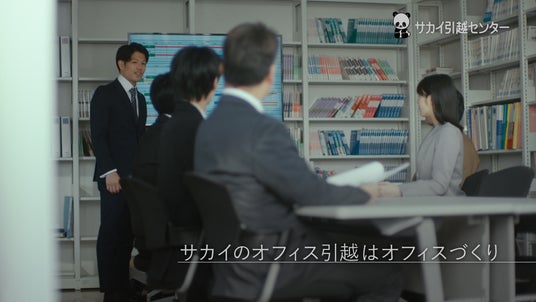 第6話「ちゃんとオフィス引越」篇では、社会人になった「私」は、新オフィス移転のプロジェクトメンバーに選ばれます。そして「私」は、メンバーといっしょに、サカイ引越センター大型移転プロジェクトチームのアドバイザーが行う、プレゼンテーションに出席します。