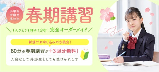 春休みは、学び直しと新たな挑戦を両立できる貴重な時間。お子さま一人ひとりに寄り添い、苦手克服も、得意科目のさらなる伸長も、完全オーダーメイドの学習プランでサポートいたします。