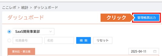ダッシュボート画面の「管理帳票出力」ボタンをクリックし、指定期間の帳票を出力します