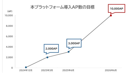 本プラットフォームに対応したアクセスポイント機器「FGNH-2000」を用いて、顧客ニーズに対応した認証画面を強みに、エンドユーザーへの直接販売や、Wi-Fiサービスを展開したいパートナーとの連携(OEM等)によりターゲット領域の拡大を行ってまいります。今後は、医療・介護施設をターゲットとしたメディカルWi-Fi、公共施設、観光施設、商業施設向けWi-FiサービスのWi-FiNexのパートナー強化も行いながら、2025年3月までに2,000箇所、2026年6月までに10,000箇所への設置を目標として活動してまいります。