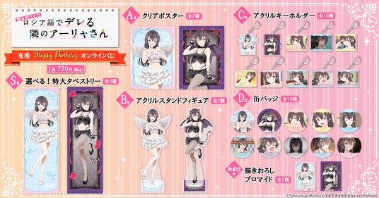株式会社KADOKAWA(本社:東京都千代田区、取締役 代表執行役社長 CEO:夏野 剛、以下 KADOKAWA)は、運営するオンラインくじサービス「くじ引き堂」において、TVアニメ『時々ボソッとロシア語でデレる隣のアーリャさん』の豪華賞品が手に入る<TVアニメ「時々ボソッとロシア語でデレる隣のアーリャさん」有希 HAPPY BIRTHDAY オンラインくじ>を、2025年3月18日(火)17時より販売します。
