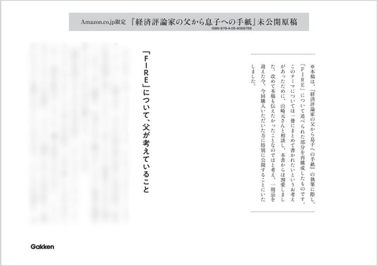 ●未公開原稿2:『経済評論家の父から息子への手紙』Amazon.co.jp限定特典「FIREについて」