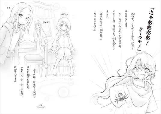 ▲クモに悲鳴をあげるルーナ。でもルームメイトたちは、きょとんとした反応で…