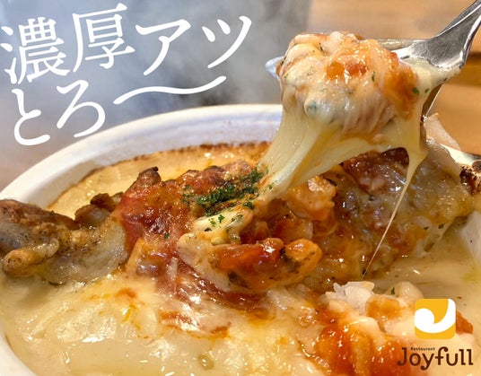 1月から2月は1年で最も寒い時期。寒くなると食べたくなるのがアツアツでとろ~りチーズのグラタンやドリアなどのオーブン料理です。ファミリーレストランのジョイフル(本社:大分県大分市 代表取締役社長:穴見くるみ)では、アツアツでとろ~りチーズの濃厚“アツとろ”メニューを取り揃えています。