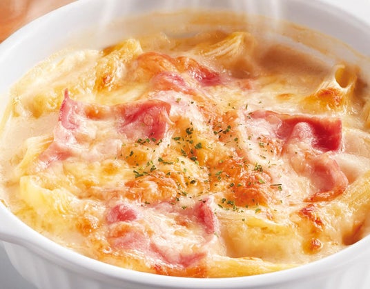 ジューシーなチキンとオリジナルホワイトソースの絡みがたまらない「チキンドリア」469円(税込515円)をはじめ、モチモチのペンネとトロトロなホワイトソースが絶妙に合う「ベーコン&ペンネグラタン」539円(税込592円)等がラインアップしています。