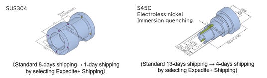 Our “Economy Shipping”*1 option, which has been a popular choice since its launch, is designed for customers who schedule orders for delivery well in advance and procure parts with the highest priority on price. By selecting this option, customers can receive a 30% discount on the price with no change in quality. Conversely, there have been many requests for "procurement with the highest priority on delivery time" to avoid the lost opportunities caused by delays in assembly schedules or equipment shutdowns due to sudden design changes or machine breakdowns. In response to these requests, minimum 1-day shipping has already been offered for certain services, such as Sheet metal*2 and CNC milling*3.