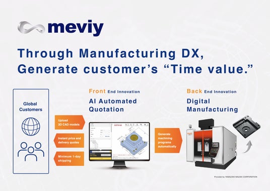 With meviy, customers simply upload a 3D CAD model of a mechanical component, the AI automatically provides an instant quote, and our digital manufacturing system enables an order to be shipped in as little as one day.