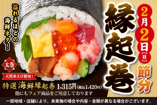 【ご予約承り中!】2月2日(日)は節分!今年の恵方は「西南西」!小僧寿しでは、無病息災の願いを込め、海鮮をふんだんに使用した『縁起巻』をご用意しました!